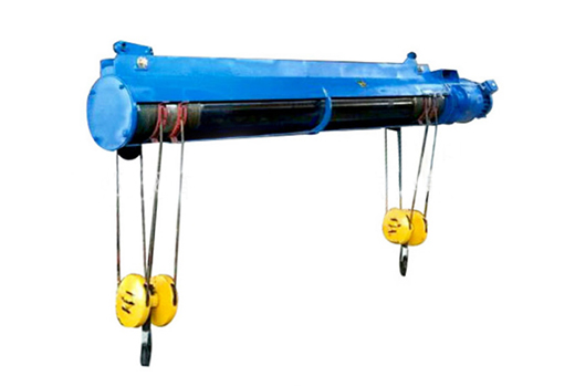 市場上雙鉤雙吊點電動葫蘆所謂雙吊點鋼絲繩電動葫蘆是指有兩個間隔一定距離的吊點,并能同時上升或同時下降的電動葫蘆?,F(xiàn)有的雙吊點鋼絲繩電動葫蘆有,在- - 臺鋼絲繩電動葫蘆卷筒兩端各有-套吊鉤滑輪裝置,這種雙吊點電動葫蘆因兩套吊鉤滑輪裝置均由--個卷筒起升或下降,可以保證兩吊點同時升降;