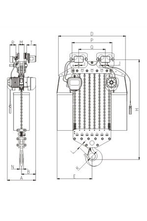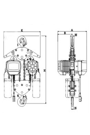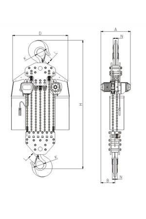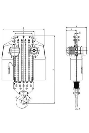 | 掛板式環(huán)鏈電動葫蘆(7.5T-50T) 尺寸參考: | ||||||||